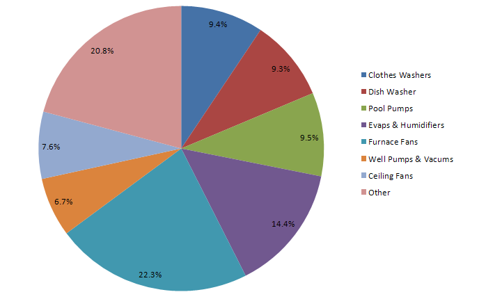 Figure 1 shows the distribution of annual electricity consumption by U.S. households. Approximately 57% of the total energy produced worldwide is used to drive electric motors . In the U.S., electric motors account for 20% of electrical energy consumption.