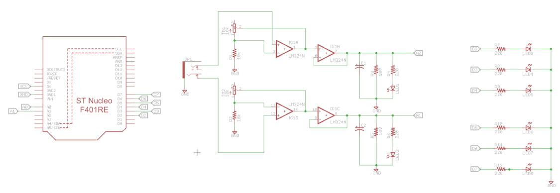 Figure 9: Schematic of the STM32 Nucleo Sight and Sound open source hardware project. (NucleoLightSoundEducationSchematic.png)