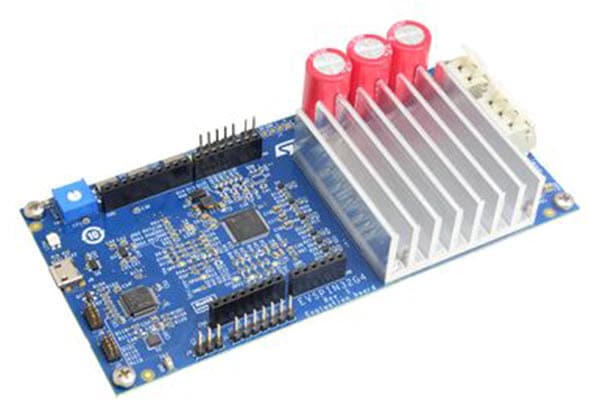 Figure 2: A highly integrated motor controller/MCU, such as the STMicroelectronics STSPIN32G4, can provide advanced motor control features and processing in a single package. The image above is the STMicroelectronics EVSPIN32G4 Demonstration Board with the STSPIN32G4 system-in-package (SiP) and STL110N10F7 power MOSFETs. (Source: Mouser Electronics)