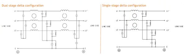 Figure 4: EMI filters are offered in dual- and single-stage configurations and are essential for attenuating common- and differential-mode interference and electromagnetic interference (EMI). (Source: Mouser Electronics)