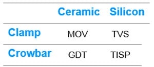 When choosing protection devices for power and signal connections an engineer must consider the fit of the application with the various options of clamps, crowbars, silicon, and ceramic devices (Table 1). Let’s examine these options in more detail.