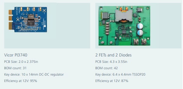 Figure 2: A power module procured solution can have a much smaller footprint and offer higher efficiency than typical discrete power solutions. (Source: Vicor)