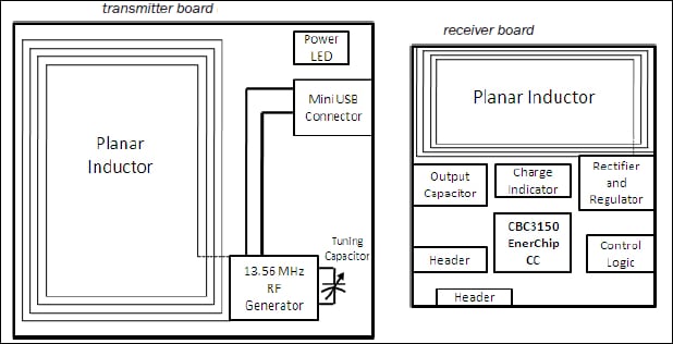 The Cymbet CBC-EVAL-11 EnerChipCC Inductive Charging Evaluation Kit is a demonstration kit combining an inductive transmitter board with a receiver board containing an EnerChip CC CBC3150 solid state storage device with integrated power management. The Cymbet CBC-EVAL-11 EnerChip CC Inductive Charging Evaluation Kit is an inductive charger for the CBC3150 with integrated energy storage management and energy harvesting emulation. The Cymbet CBC-EVAL-11 system consists of an inductive wireless transmitter module tuned to a frequency of 13.56 MHz and an inductive wireless charger (receiver module). The transmitter module is designed to be powered by a computer USB port.